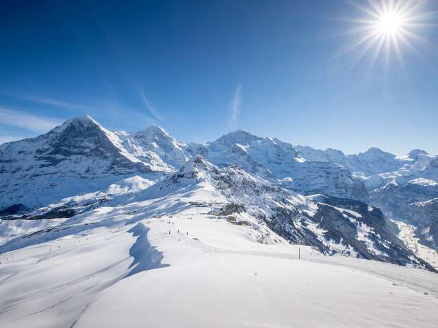 Die Jungfrau Ski Region lockt mit viel Sonne und besten Bedingungen. Freu dich auf schöne Schwünge auf griffigen Pisten, entspannte Pausen auf sonnigen Terrassen und den beeindruckenden Blick auf die Bergwelt.