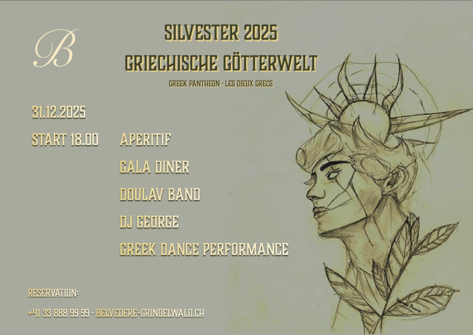 Feiere den Jahreswechsel in göttlicher Atmosphäre! Unter dem Motto „Griechische Götterwelt – Greek Pantheon“ erwartet dich am 31. Dezember 2025 ab 18.00 Uhr ein festlicher Abend voller Genuss und Unterhaltung.