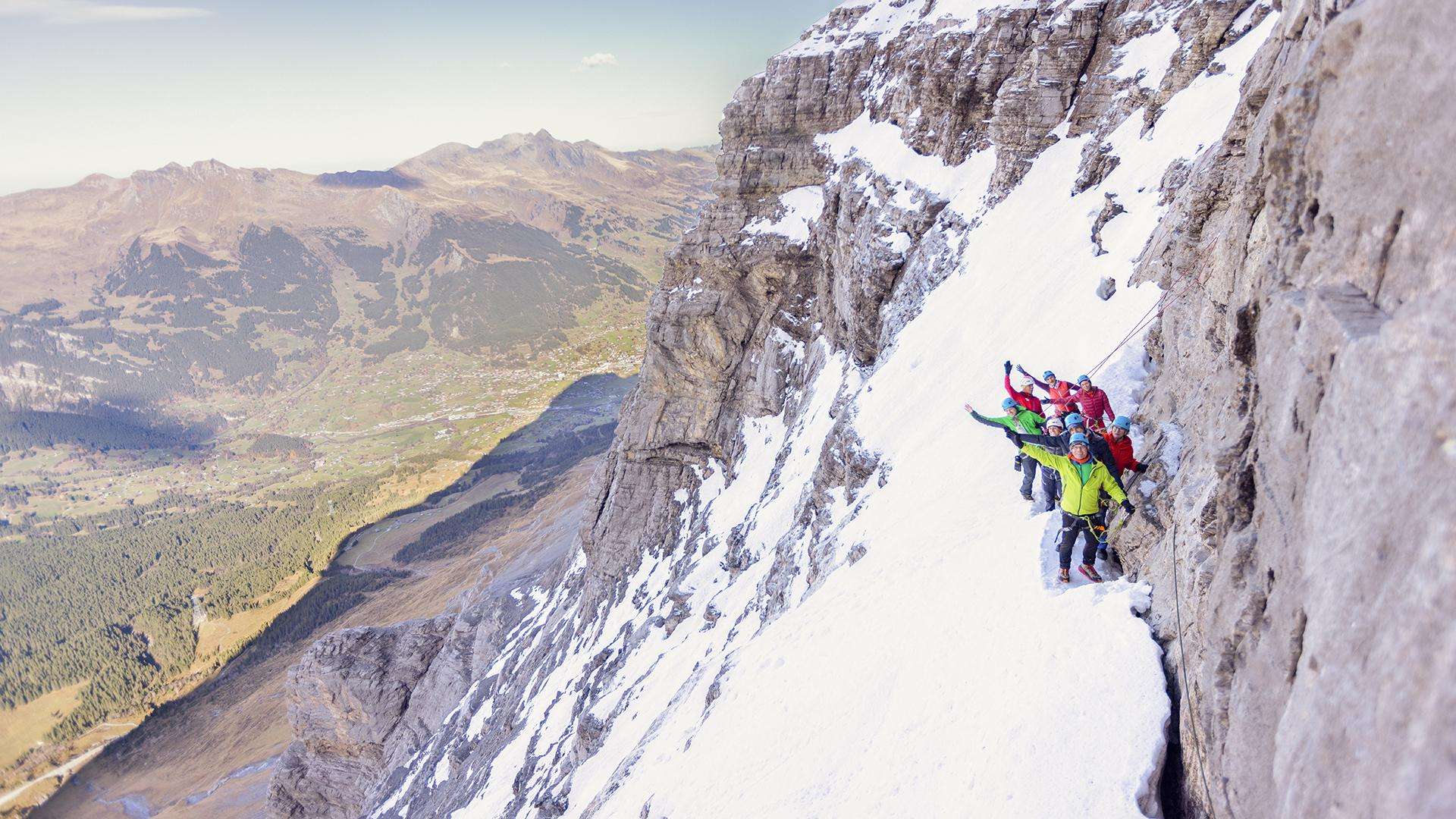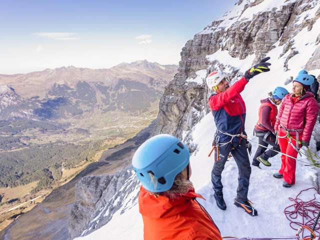 Gerne erzählen euch bei dieser Gelegenheit eure Begleitpersonen von OUTDOOR alles Wissenswerte über das Drama und das Spektakel der Erstbesteigung der Eigernordwand und zeigen euch das damals verwendete Klettermaterial im Gegensatz zum heute Üblichen. Ihr werdet staunen. In der 2'000 m hohen Eigernordwand erwartet euch eine 600 m tiefe Aussicht ins Tal. Im Anschluss an das einmalige Erlebnis in der Eigernordwand fahrt ihr nach Wunsch entweder weiter mit dem Zug aufs Jungfraujoch oder ihr kehrt mit Zug und/oder Gondelbahn nach Grindelwald zurück.