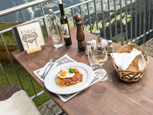 Direkt neben der Gondelstation First, auf 2200 m ü. M., befindet sich das Berggasthaus First mit seinem atemberaubenden Ausblick auf die umliegende Bergwelt. Auf der Sonnenterrasse und im Restaurant geniesst du den ganzen Tag köstliche Gerichte.