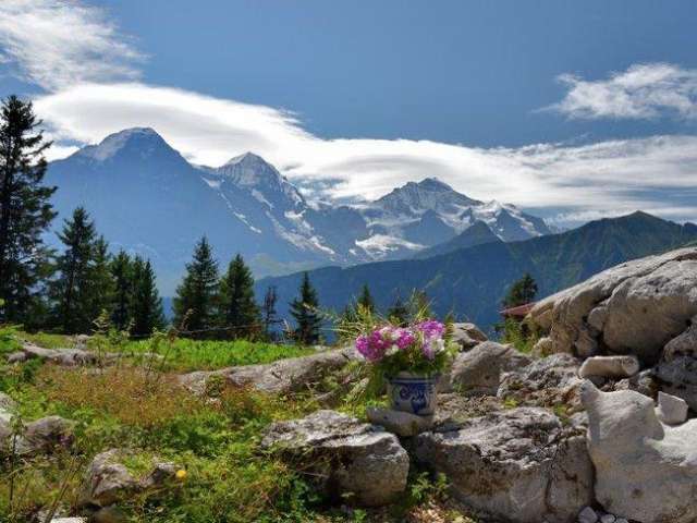Mit der einmaligen Aussicht auf Eiger, Mönch und Jungfrau.