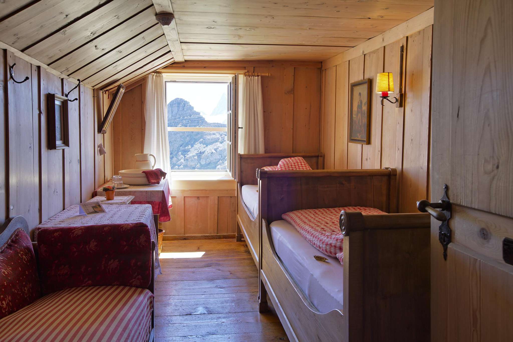 Gemütlich und liebevoll eingerichtete Privatzimmer sowie ein rustikales Matratzenlager für grössere Gruppen können im Berghotel gebucht werden. Aber auch Tagesgäste sind willkommen. Eine Sonnenterrasse mit herrlichem Bergblick erwartet dich auf dem Gipfel.