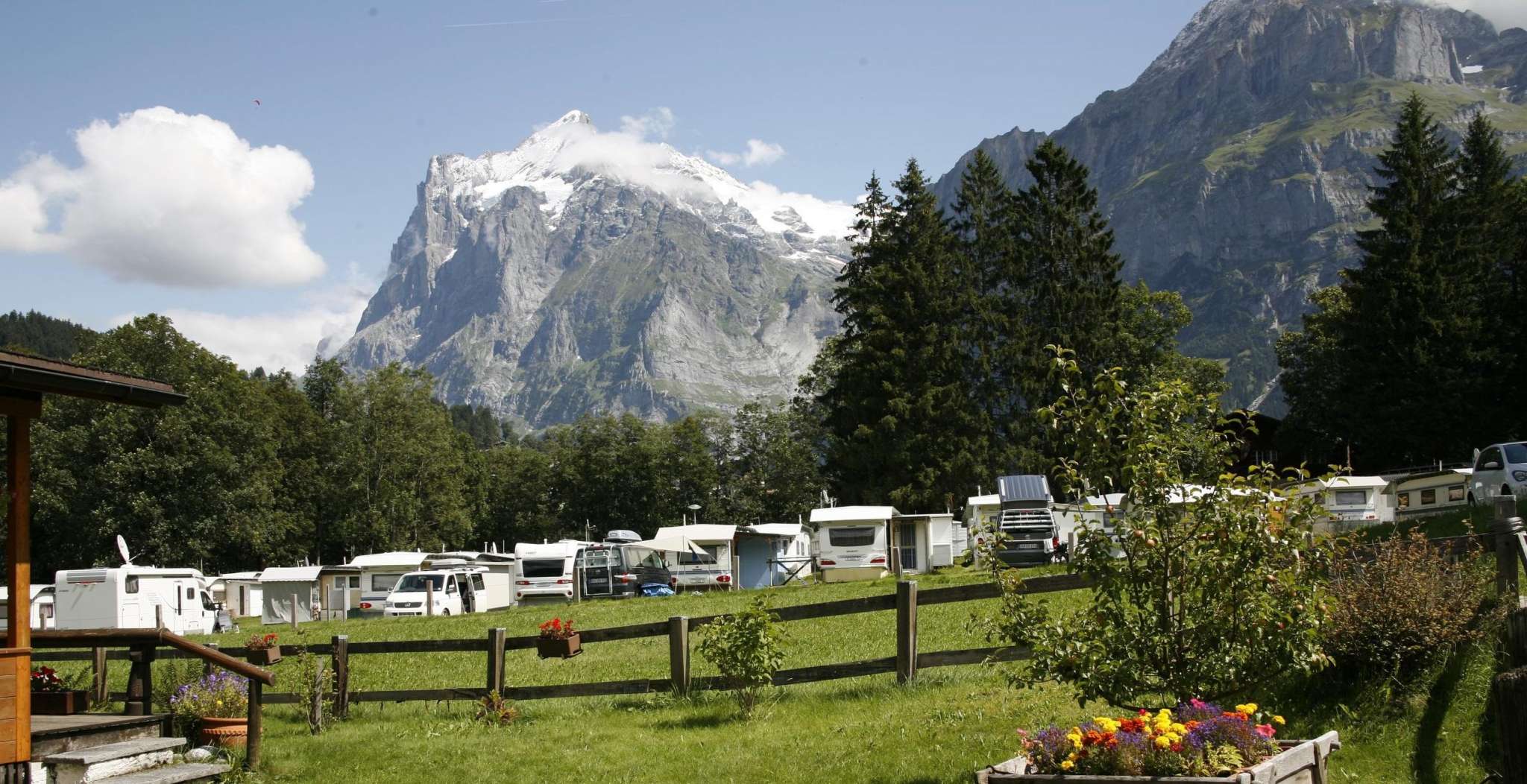 Der Camping Eigernordwand liegt mitten in der Natur und ist der ideale Ausgangspunkt für alle Sommer- und Winteraktivitäten, welche Grindelwald zu bieten hat. Die Bahnstationen Grindelwald Terminal und Grindelwald Grund-Männlichen sind zu Fuss in wenigen Minuten erreichbar.