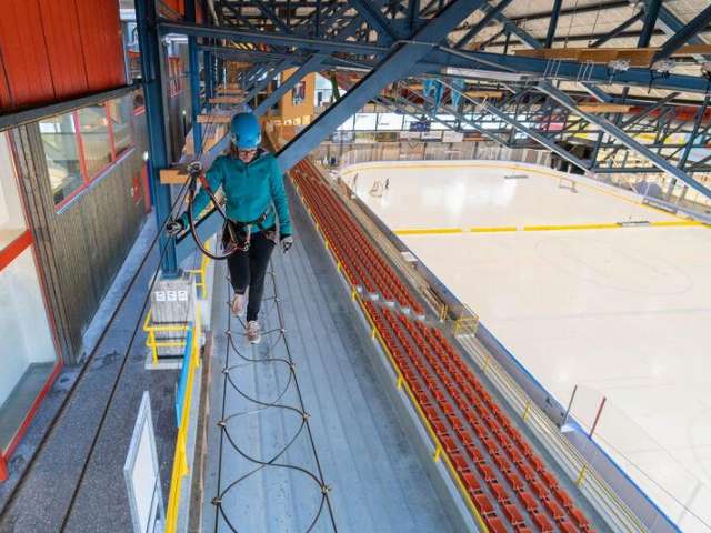 Vom einfachen «Eiger Westgrat» bis zur schwierigen «Eiger Nordwand» sorgen im ersten Indoor Seilpark der Schweiz fünf Routen für Abenteuer in luftiger Höhe. Unter dem Dach der Eishalle balancierst, kletterst oder fliegst du über teils wackelige, teils originelle Elemente. Nach kompetenter Einführung durch das Personal wird der Seilpark individuell begangen.