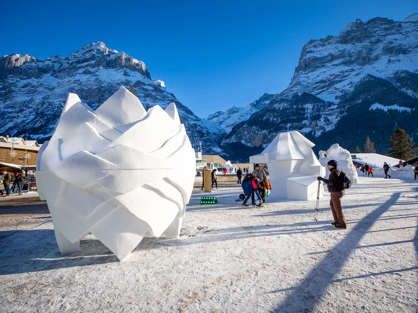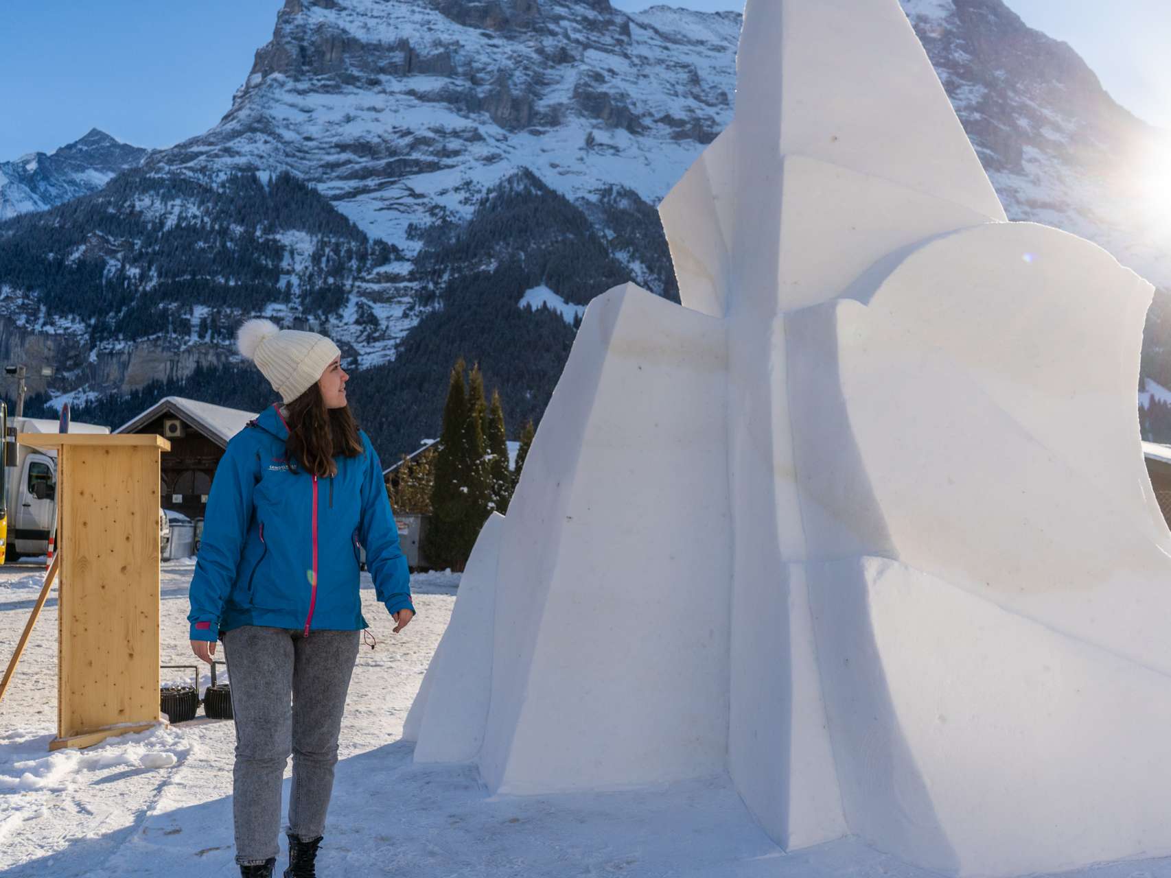 «Auf meinem morgentlichen Weg zum Büro von Grindelwald Tourismus im Sportzentrum Grindelwald begegne ich nur wenigen Leuten. Es ist noch ruhig im schneebedeckten Dorf, doch ich weiss, in wenigen Stunden wird hier viel los sein. Kurz vor dem Eingang zum Sportzentrum laufe ich an meterhohen Schneebergen vorbei. Heute ist nämlich der vorletzte Tag des alljährlich stattfindenden «World Snow Festival». Internationale Teams bauen während einer Woche in Grindelwald und Umgebung Schneeskulpturen – und treten so gegeneinander im Wettbewerb an. Das diesjährige Thema heisst «Berg», was die Schneeberge auf meinem Arbeitsweg erklärt.