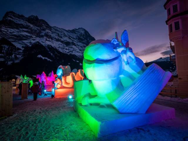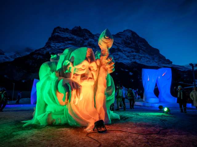 The World Snow Festival in Grindelwald is a festival of icy art where international artists from all over the world create figures and sculptures from three-metre-high blocks of snow. The festival takes place from 18 - 24 January 2027. The motto for the 42nd edition is “Animal worlds”.