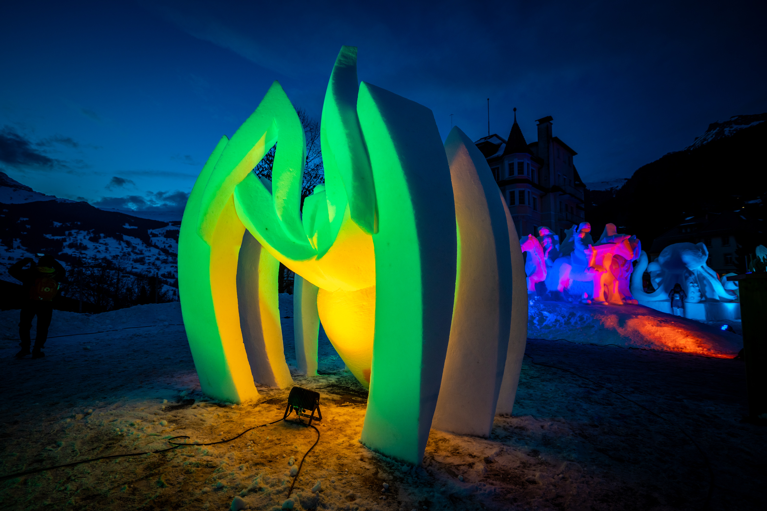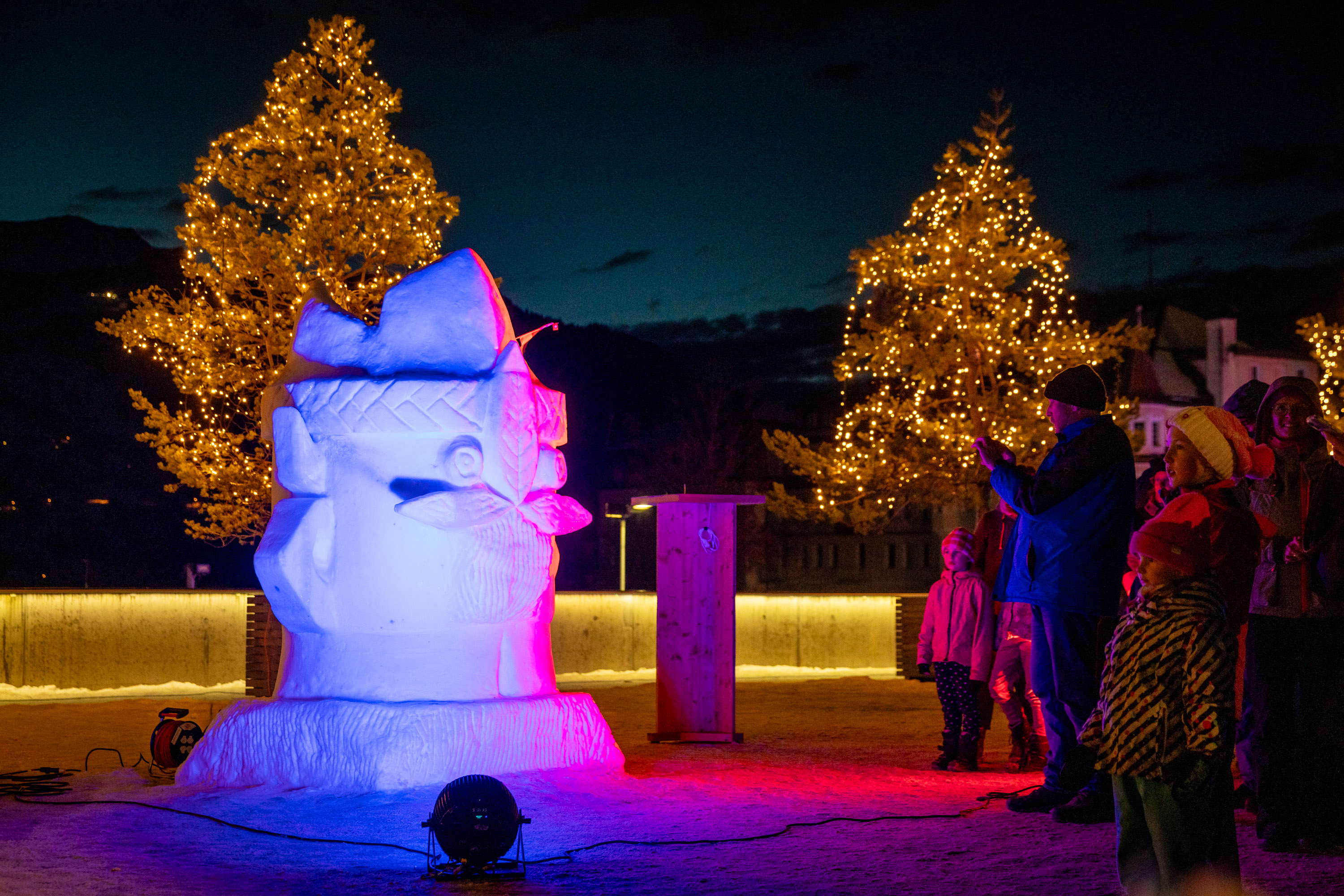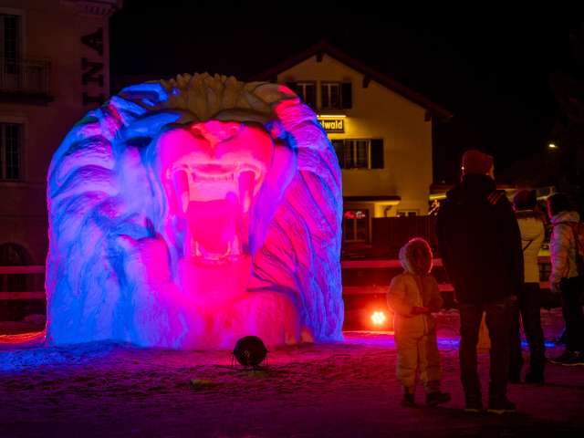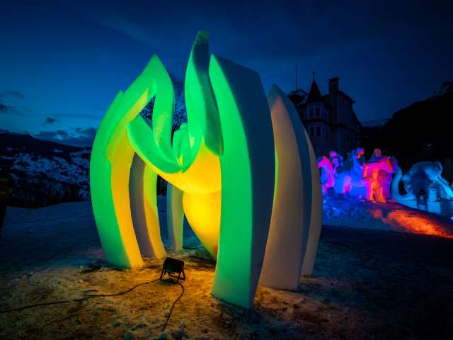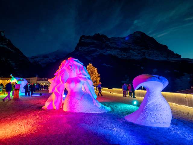 For five days, the teams work on their sculptures from 8:00 a.m. to 6:00 p.m. Visitors can watch the artists at work until the sculptures are completed. In the Männlichen ski area, teams also work daily from 9:00 a.m. to 4:00 p.m. to shape the impressive snow forms. The finished artworks can be admired from Friday, January 22, from 12:00 p.m. From Friday through Sunday, January 24, the sculptures will be illuminated in colors in the evening. Depending on the weather, the snow sculptures can still be admired into February.