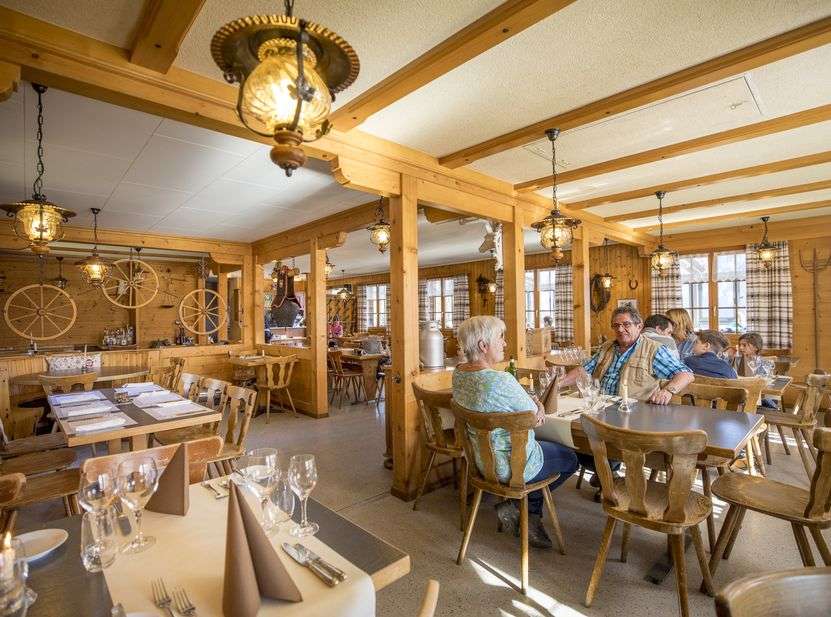 The Bussalp mountain restaurant with its serviced restaurant and large sun terrace, AlpLounge with sofas and sunbathing area, deckchairs and a Kneipp bath invite you to unwind after a hike. Our service and kitchen team will spoil you with traditional hut dishes as well as culinary forays.