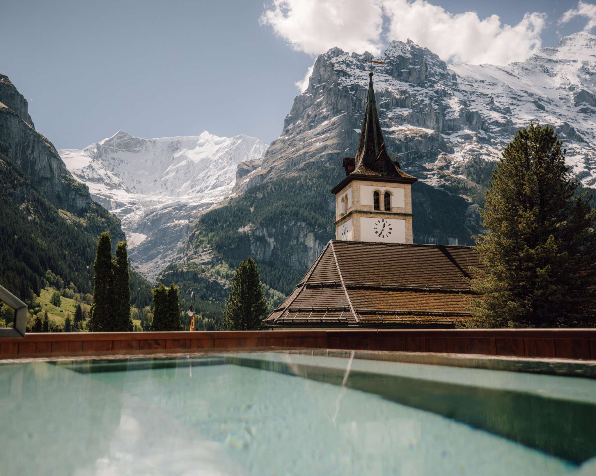 After a day on the slopes or hiking, guests can unwind in the Japanese-inspired saltwater onsen pool with mountain views, or relax in the Finnish panoramic sauna overlooking the Eiger, Fiescherhorn, and glacier. The experience is complemented by a rain shower, Feuerstein™ care products, refreshing beverages, and attractive Private Spa Packages.