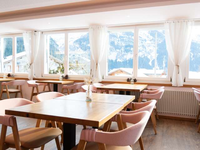 Welcome to Grindellodge, where alpine charm meets the delicate beauty of sakura.