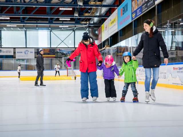 The artificial ice rink in the sports centre invites you to skate or play ice hockey - from the end of July to the end of April.