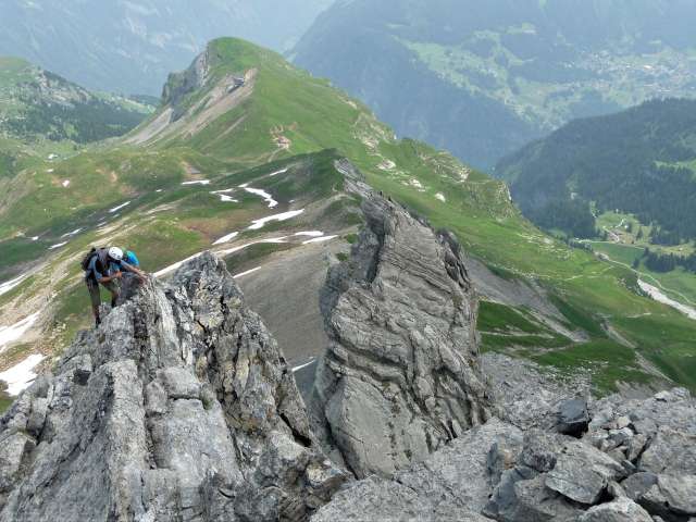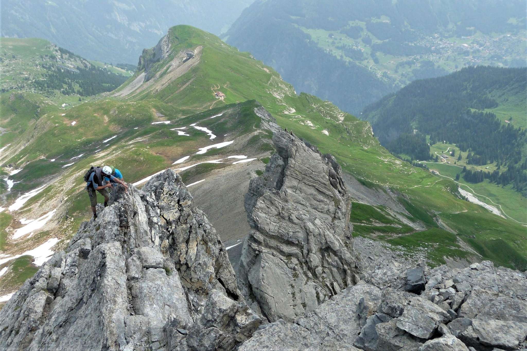 This classic climbing tour in the Bernese Oberland offers an unrivalled experience with views of the surrounding mountain ranges. No climber should miss out on the exposed summits. If you want to shorten the morning ascent a little, treat yourself to a night in the Lobhornhütte, from where you can reach the foot of the Lobhörner in 1h 40min. The approach from Sulwald takes about 2h 45min. Once all the equipment has been assembled, the marvellous climb over the Zipfelmütze, the Kleine Lobhorn and the Grosse Lobhorn begins. You have packed a 60 metre rope, 10 express carabiners and a few slings. This will get you comfortably over the routes in difficulty levels 2b to 4c. As many passages are an alpine path and not a climbing route, you should also pack mountain boots. Topos can be found in the climbing guides Interlaken (Vertical Sport) or Plaisir. Before you abseil down to the saddle from the last spike, enjoy the magnificent view once again during a long rest at the summit. The Lobhörner lie at around 2500 metres above sea level between the Soustal and Saustal valleys. They are the easiest to reach from Sulwald. The ascent (downhill) from the Schilthorn is also a worthwhile tour.