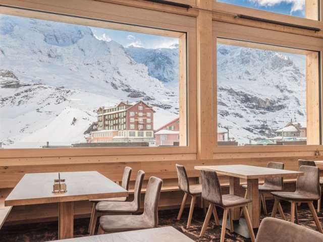 The generous window front allows you to catch a glimpse of the world-famous north face of the Eiger from every seat in the restaurant. The terrace surrounding the restaurant is bathed in glorious mountain sunshine all day long.