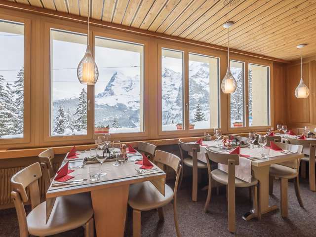 The restaurant is easily accessible with the Lauterbrunnen - Mürren mountain railway. It is a two-minute walk from the railway station and is the perfect starting point for the short hike via Winteregg to Grütschalp or the Chänelegg snowshoe tour.