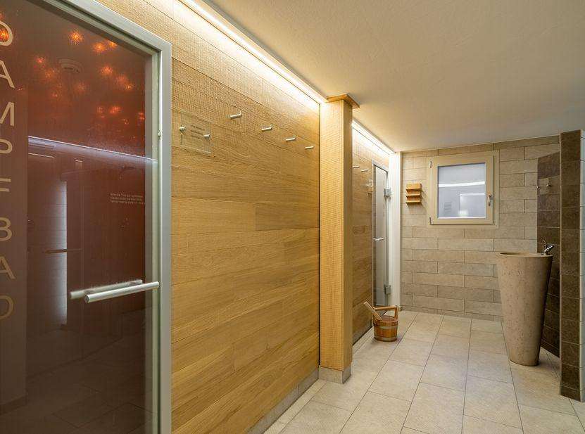 The Hotel Gletschergarten offers you a small but fine wellness oasis with sauna/sanarium, steam bath and a cosy relaxation room. Relax after a long day of skiing or hiking. When furnishing our wellness area, we attached great importance to natural materials, using a lot of oak and Swiss stone pine from the region.