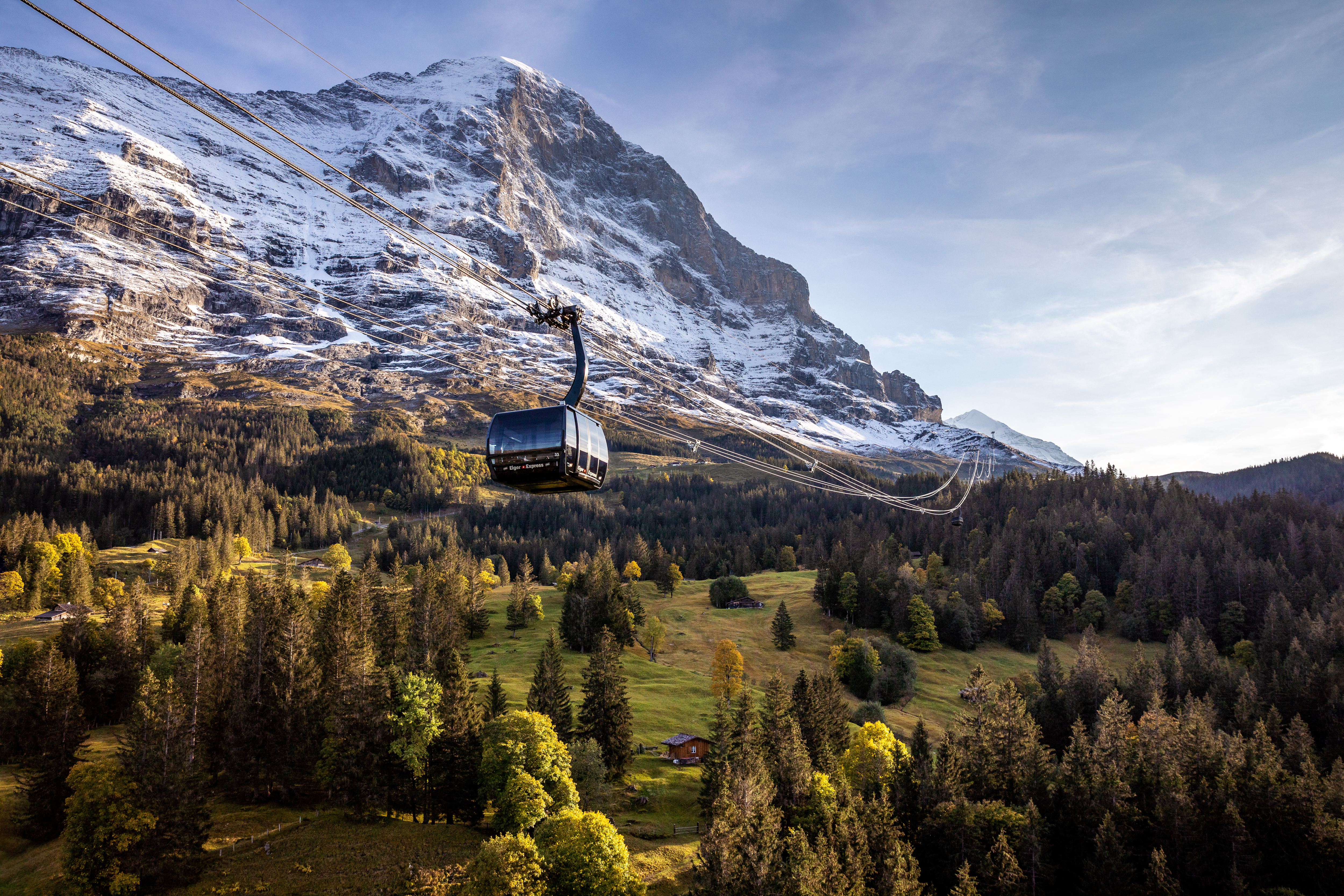 With a length of 6.2 km, the Grindelwald-Männlichen gondola cableway was the longest gondola cableway in the world for many years. However, since 1995, this record has belonged to the Rainforest gondola cableway in Australia. In 2019, the old cableway was dismantled and replaced with a new, faster gondola cableway. The 10-seater gondolas offer spectacular views of the impressive mountain landscape. In just 19 minutes, the gondola cableway will take you from Grindelwald Terminal to the Männlichen – to the heart of the hiking and skiing area at 2,225 metres above sea level.