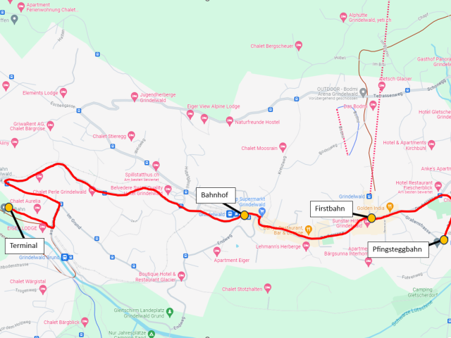 Le bus offre des liaisons avec le centre du village, la gare, les téléphériques First et Pfingstegg.