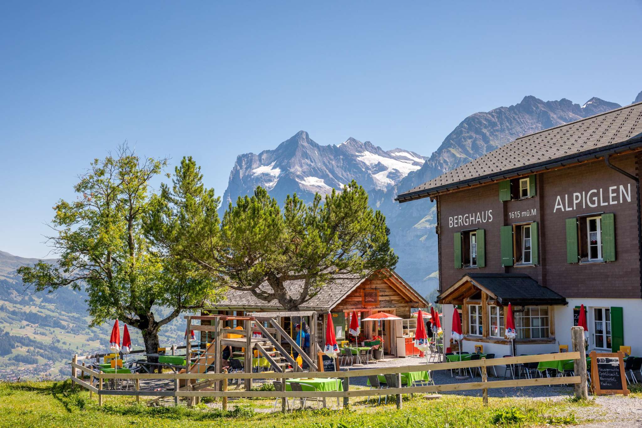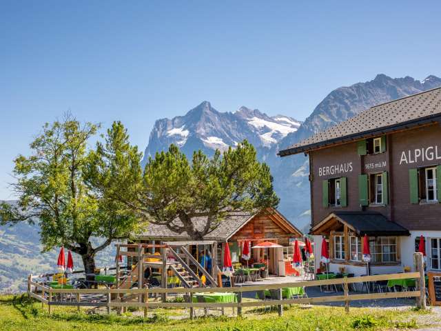 Après une longue randonnée, tu peux reprendre des forces au Berghaus Alpiglen, tandis que les enfants peuvent continuer à se défouler sur l'aire de jeux. Le tout avec une vue magnifique sur les montagnes environnantes.
