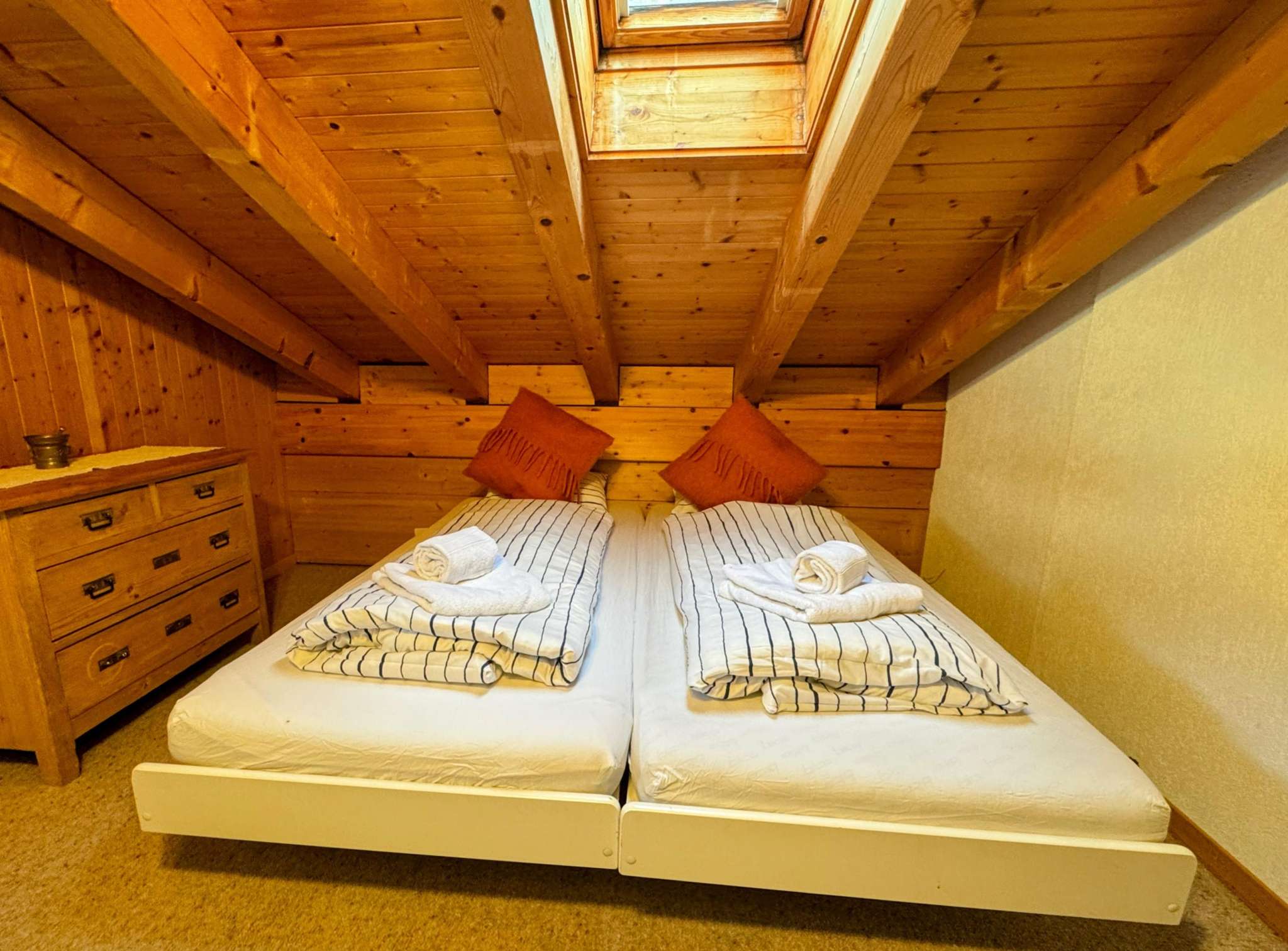 2 chambres à coucher (1x grand lit double, 2x lits simples)