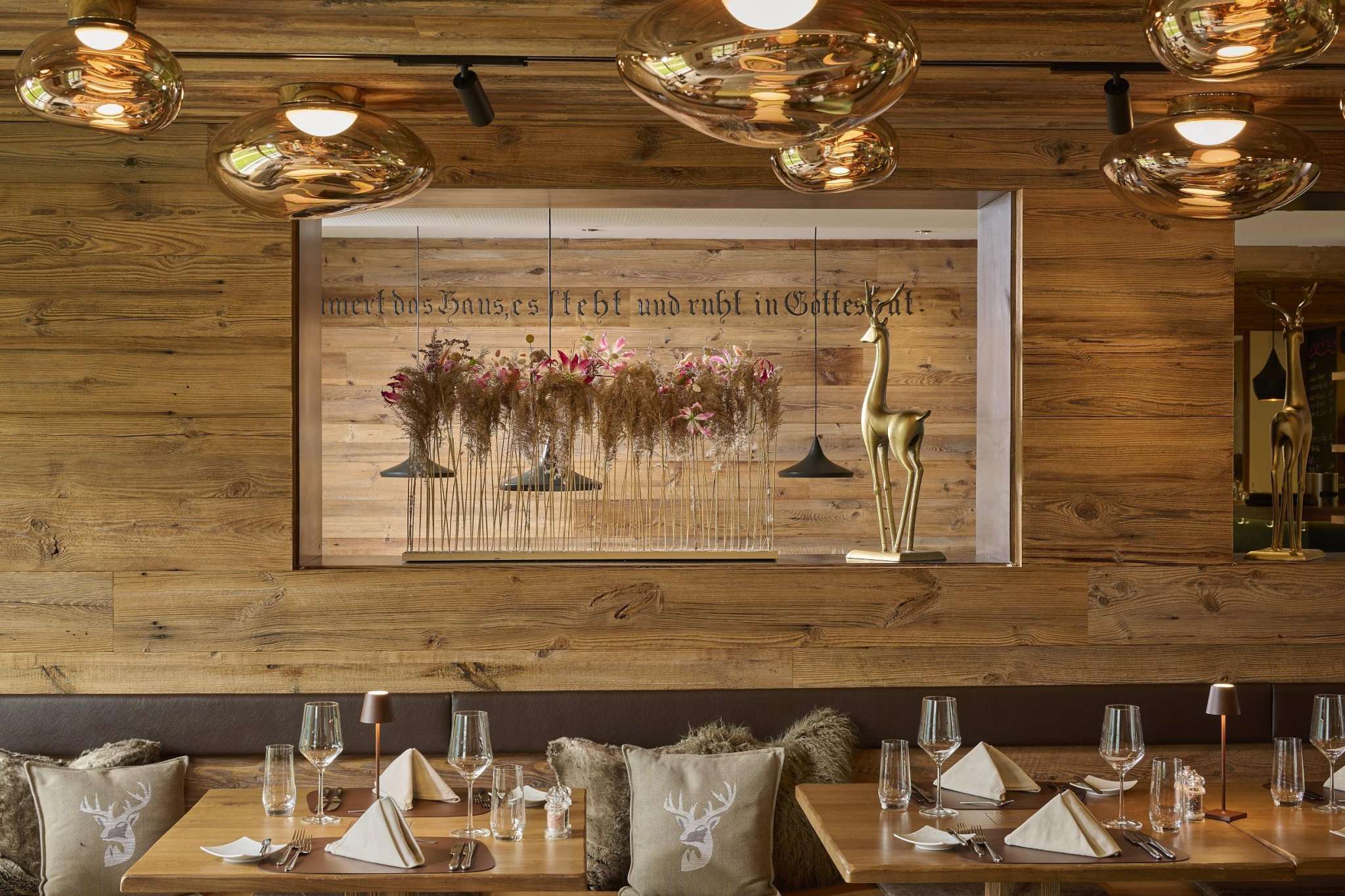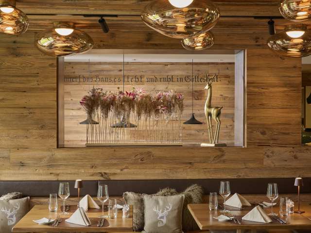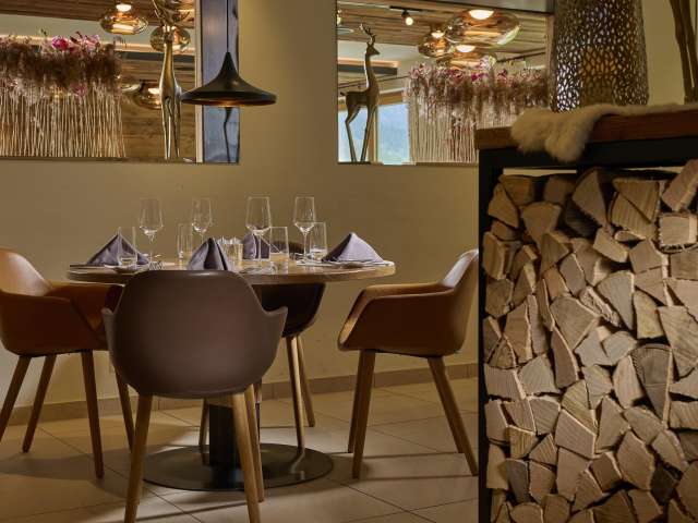 Avec une grande attention aux détails, la tradition et la modernité s'unissent dans les restaurants et le bar récemment rénovés. Un design contemporain entre le style chalet, la cabane alpine et l'étable à vaches. Les thèmes des sports de montagne et de la forêt t'accompagnent dans toute la maison et sont habilement mis en œuvre dans les restaurants et au bar, jusque dans les moindres détails.