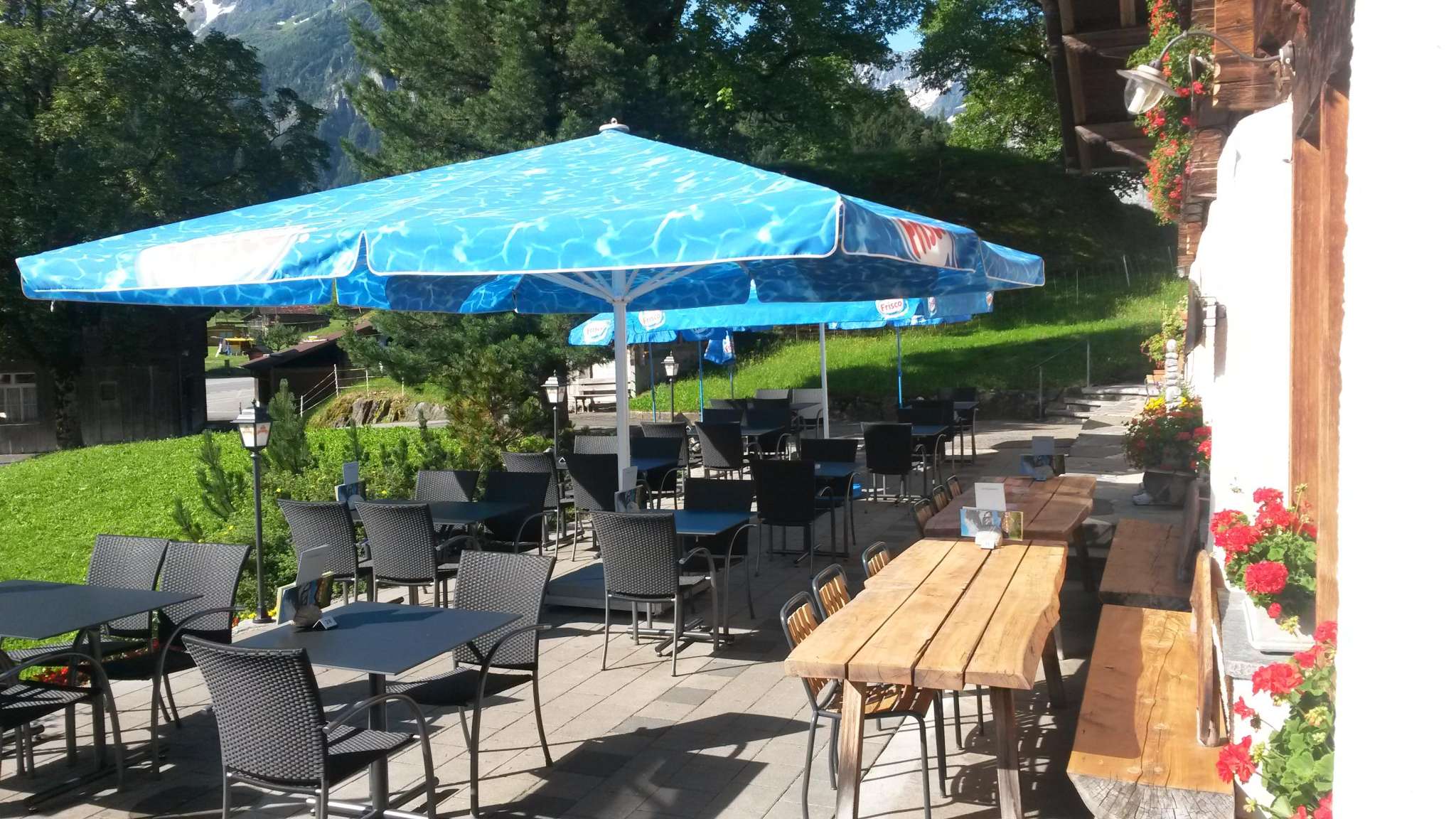 Pendant la saison chaude, la belle terrasse du jardin, avec vue sur le magnifique paysage de montagne, invite à la détente. Une petite aire de jeux pour enfants et un train miniature font oublier le temps aux enfants.