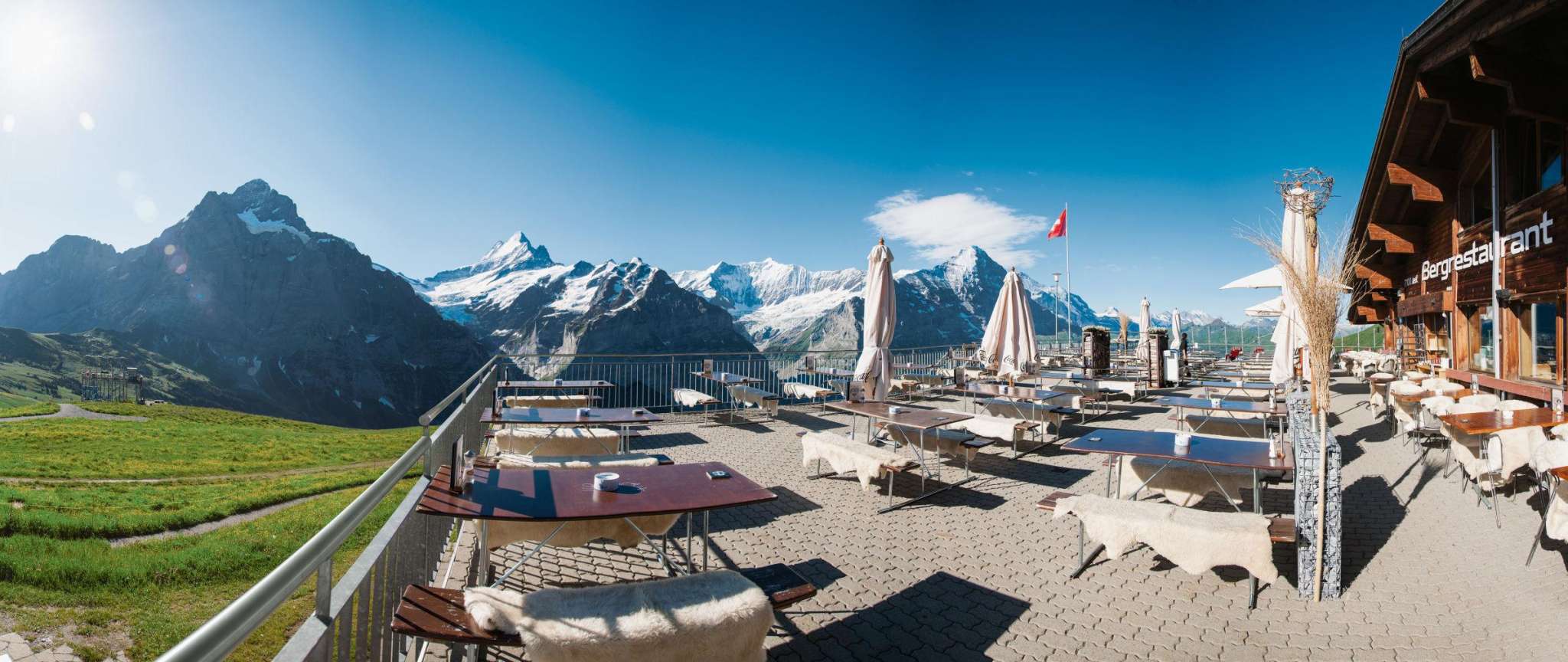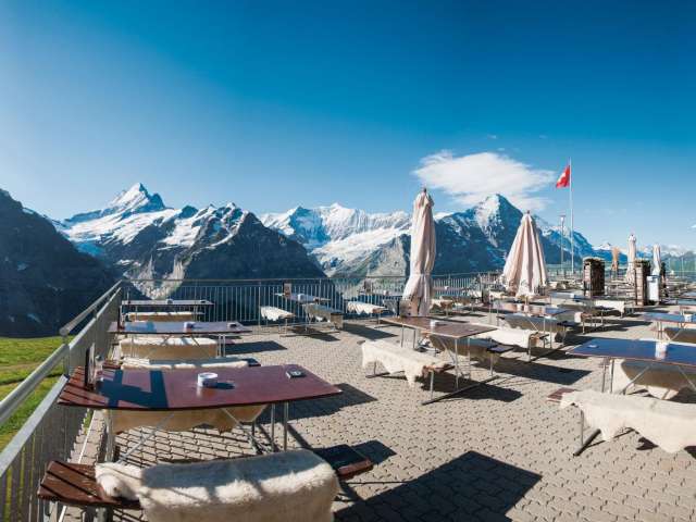Juste à côté de la station de télécabine First, à 2200 mètres d'altitude, se trouve l'auberge de montagne First avec sa vue imprenable sur les montagnes environnantes. Sur la terrasse ensoleillée et dans le restaurant, tu dégusteras toute la journée des plats délicieux.