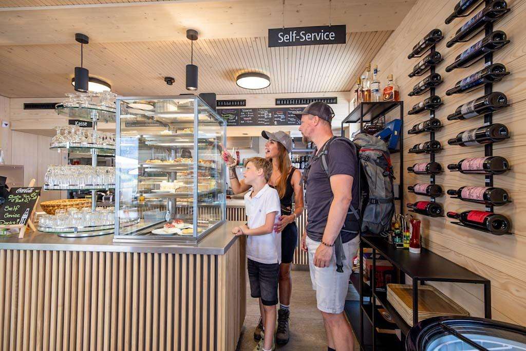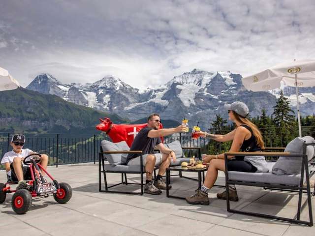 Qu'il s'agisse d'une excursion de randonnée détendue ou d'une descente de montagne variée en VTT : une petite pause fait toujours du bien. Directement sur le toit de la station de téléphérique de Grütschalp, le charmant bistrot invite à la détente. Il sert de point de départ pour des randonnées panoramiques et un trail freeride pour les vététistes* expérimentés. Toute l'année, tu seras choyé ici avec une offre petite mais bien pensée de snacks et de boissons - ainsi qu'une vue à couper le souffle sur les trois sommets Eiger, Mönch et Jungfrau. Ici, on aime rester assis un peu plus longtemps.