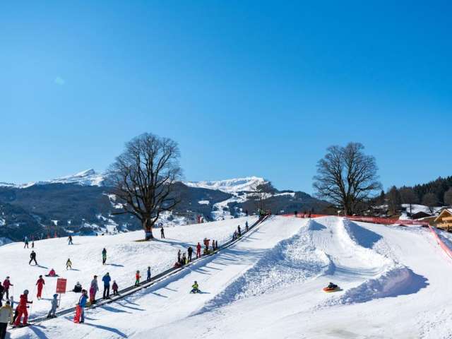 Dans le domaine géré par l'école suisse de ski de Grindelwald, un tapis roulant et un téléski à assiette sont à ta disposition. Que tu fasses du ski, de la luge, du snowtubing ou que tu joues, tout le monde y trouvera son compte.