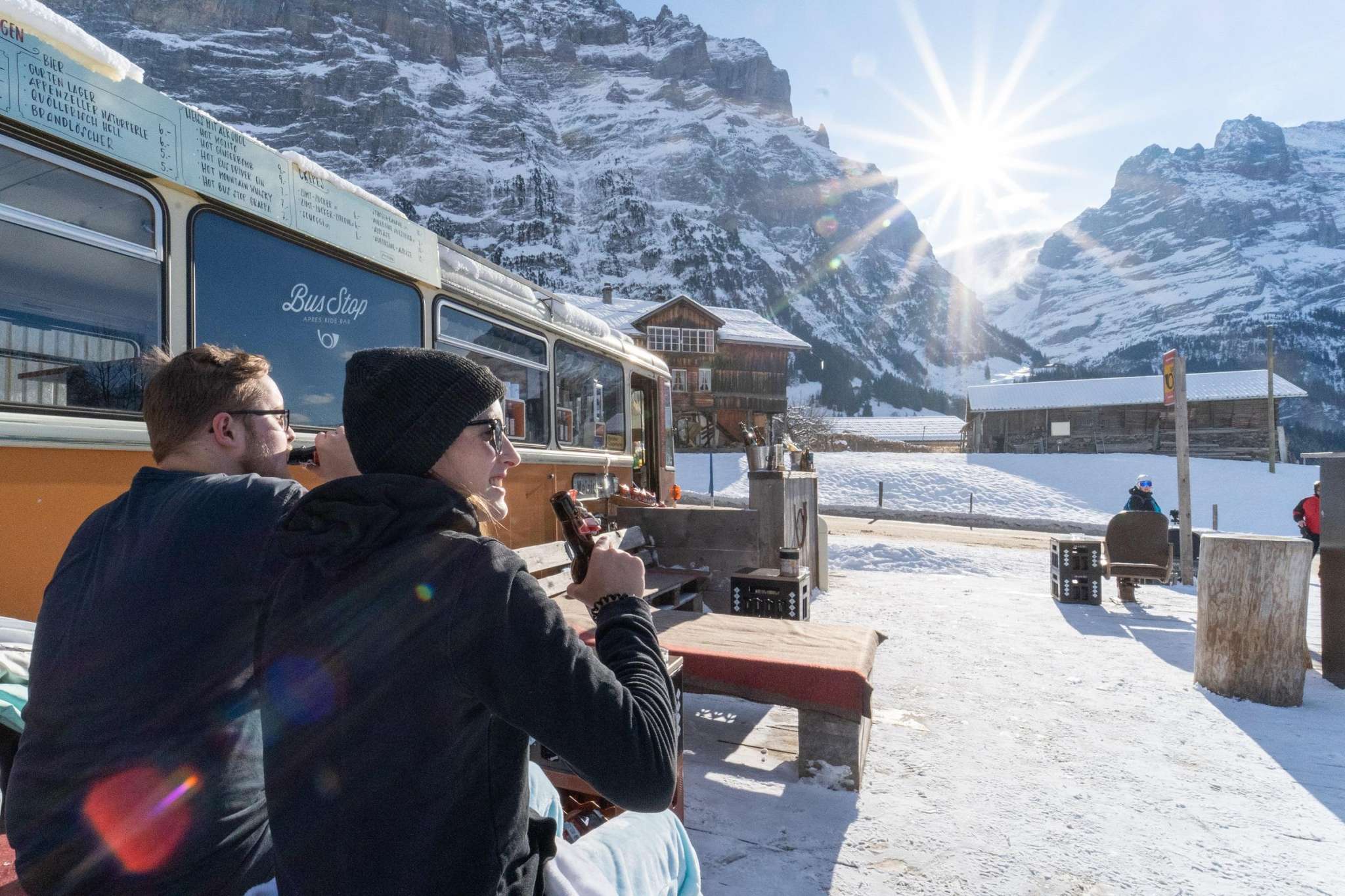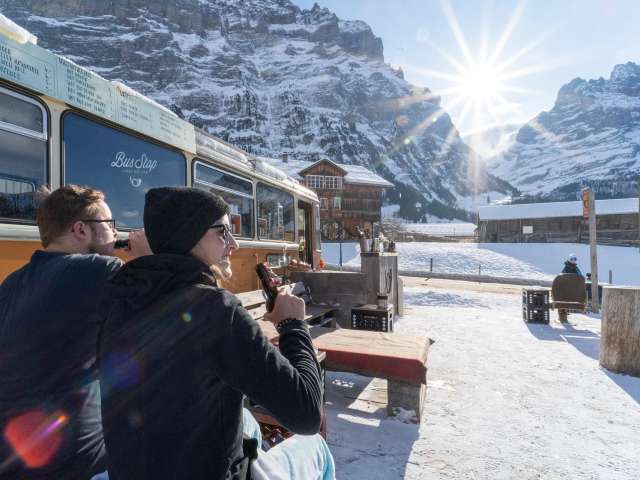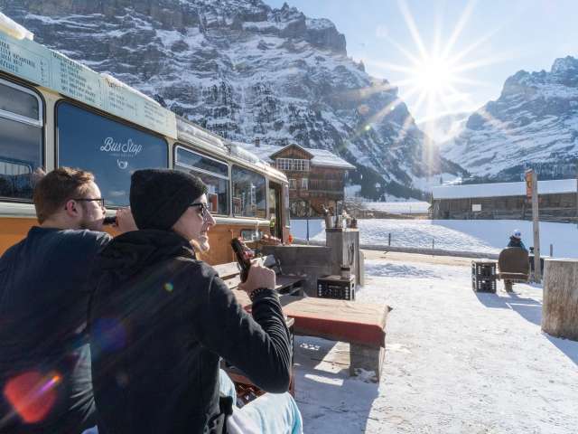 Un bar dans un bus datant de 1960. A la fin de la descente de la vallée de Grindel, tu te rends directement à l'arrêt du bus avec tes skis ou ton snowboard. Le bar est un voyage dans le passé. Une atmosphère indéniable avec du charme et du flair. Passe et goûte au café exclusif Motorenöl, à une Gingerbomb ou à un Mojito chaud.