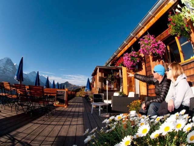 Sur la Bussalp (1800 m d'altitude) se trouve le confortable bistrot de montagne avec une grande terrasse ensoleillée et un panorama unique sur l'Eiger, le Mönch et la Jungfrau.