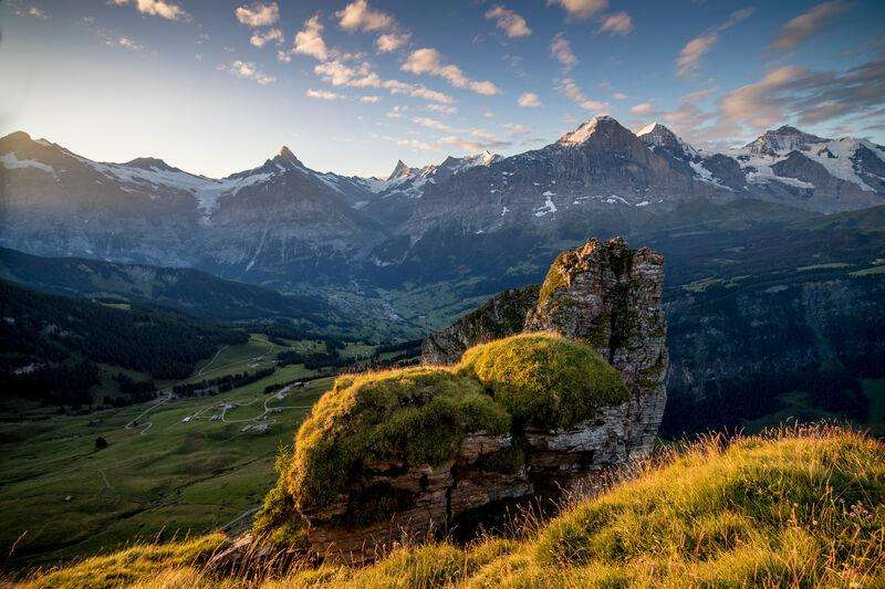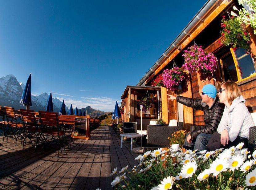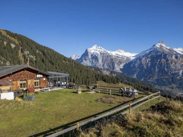 Le restaurant alpin Bussalp offre une grande terrasse avec une vue panoramique à couper le souffle, un AlpLounge avec des canapés et une pelouse. Après une longue randonnée, tu peux laisser ton âme se reposer dans les chaises longues et détendre tes pieds dans un bain Kneipp. Et bien sûr, c'est ici que le coucher de soleil devant les magnifiques montagnes de Grindelwald peut être vécu le plus confortablement, accompagné de plats traditionnels de cabane jusqu'à des excursions culinaires à travers les montagnes de la région.