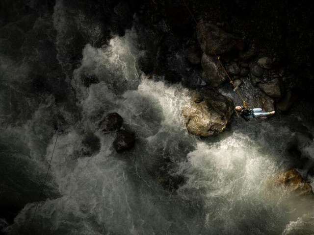 120 km/h swing, 50 m de chute libre - c'est ce qui t'attend en sautant dans le canyon glaciaire de 90 m de profondeur. Une corde freine ta chute libre juste au-dessus de la rivière et te balance plusieurs fois dans un mouvement de balancier à travers le canyon. Il est impératif de réserver à l'avance.