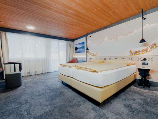 Les 39 chambres et 10 appartements sont tous meublés dans le style alpin. La plupart des chambres ont un balcon avec vue sur le magnifique monde de la montagne.