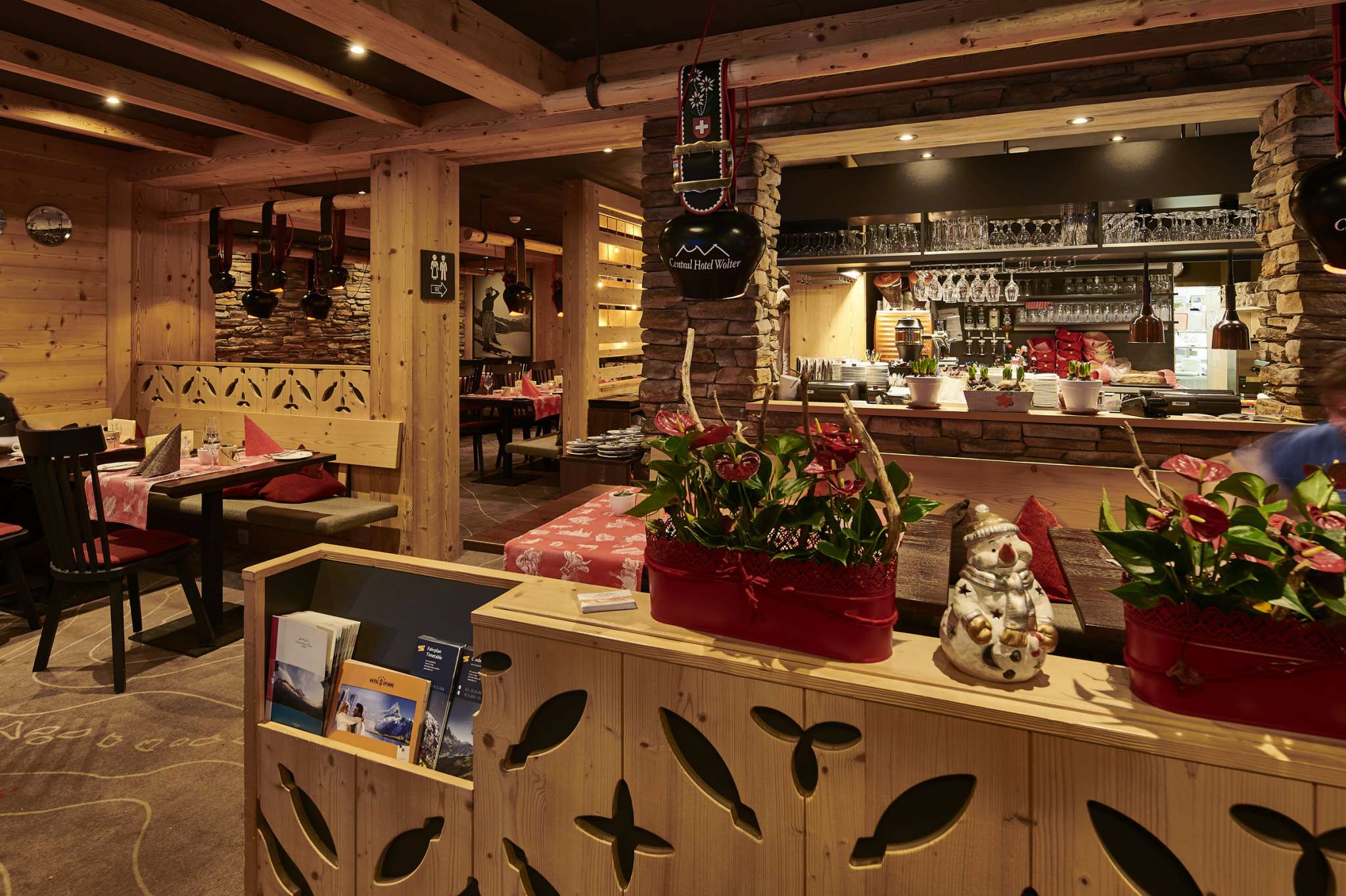 Dans le restaurant confortable et rustique, vous serez choyé avec des spécialités internationales et traditionnelles. Sur la terrasse chauffée du boulevard, le soleil brille pour vous dès le matin, en buvant un café avec une vue magnifique sur l'Eiger.