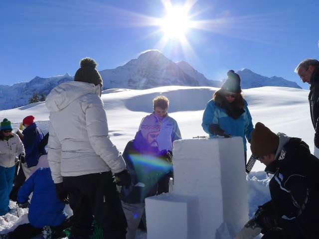 C'est avec plaisir que nous viendrons vous chercher au point de rendez-vous pour l'activité "Construction de sculptures sur neige" et que nous vous emmènerons, au choix à pied, en luge ou en raquettes, dans un endroit enchanteur de la région enneigée de la Jungfrau en hiver.