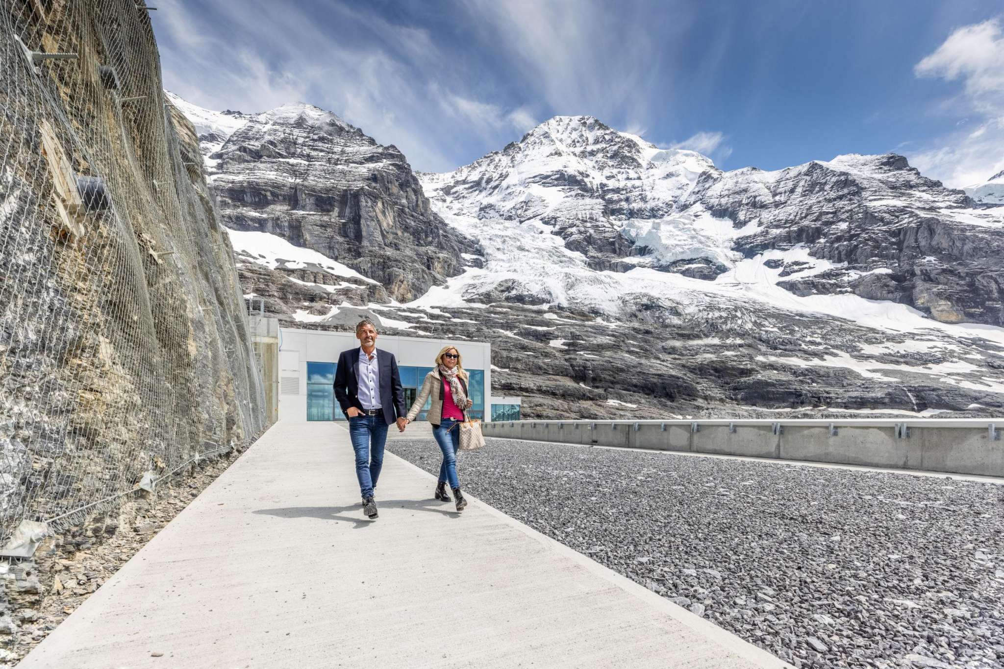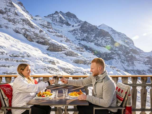 Station supérieure de l'Eiger Express, point de départ pour la montée au Jungfraujoch : c'est le glacier de l'Eiger. Il relie le domaine de randonnée et de ski au pied de la face nord de l'Eiger au monde fascinant de la glace et de la neige du Jungfraujoch. En hiver, les amateurs de ski ou de snowboard emprunteront l'une des nombreuses pistes de descente. Et si vous avez envie de marcher en été, vous avez ici le choix entre des sentiers de randonnée alpine et des sentiers pédestres en pente douce. Profite d'un apéritif et d'une vue unique sur le panorama de montagne sur la terrasse du restaurant Eigergletscher.