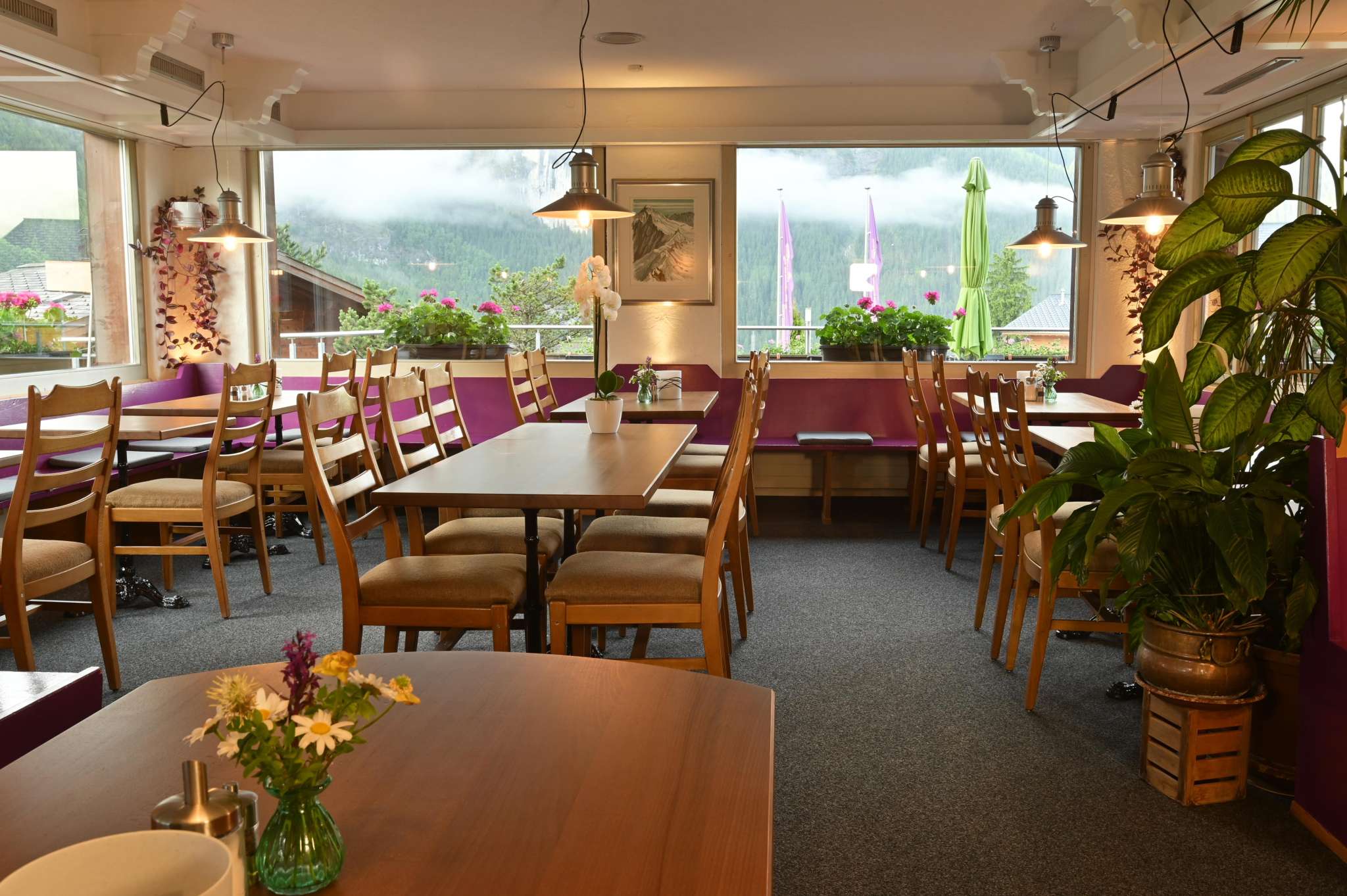 Entreprise familiale authentique. Que vous passiez la nuit dans l'une de nos chambres confortables ou que vous dégustiez un délicieux repas au restaurant, vous bénéficierez ici d'une hospitalité sincère et d'un service simple, avec en prime une vue imprenable sur les Alpes!