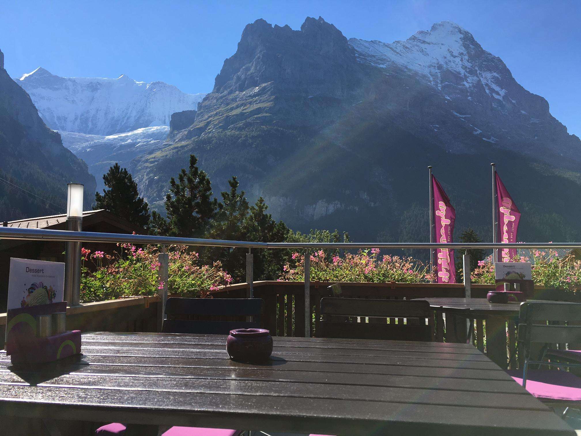 L'hôtel Alpenblick est situé à l'extrémité du village de Grindelwald, mais il n'est pas à l'écart et porte bien son nom.