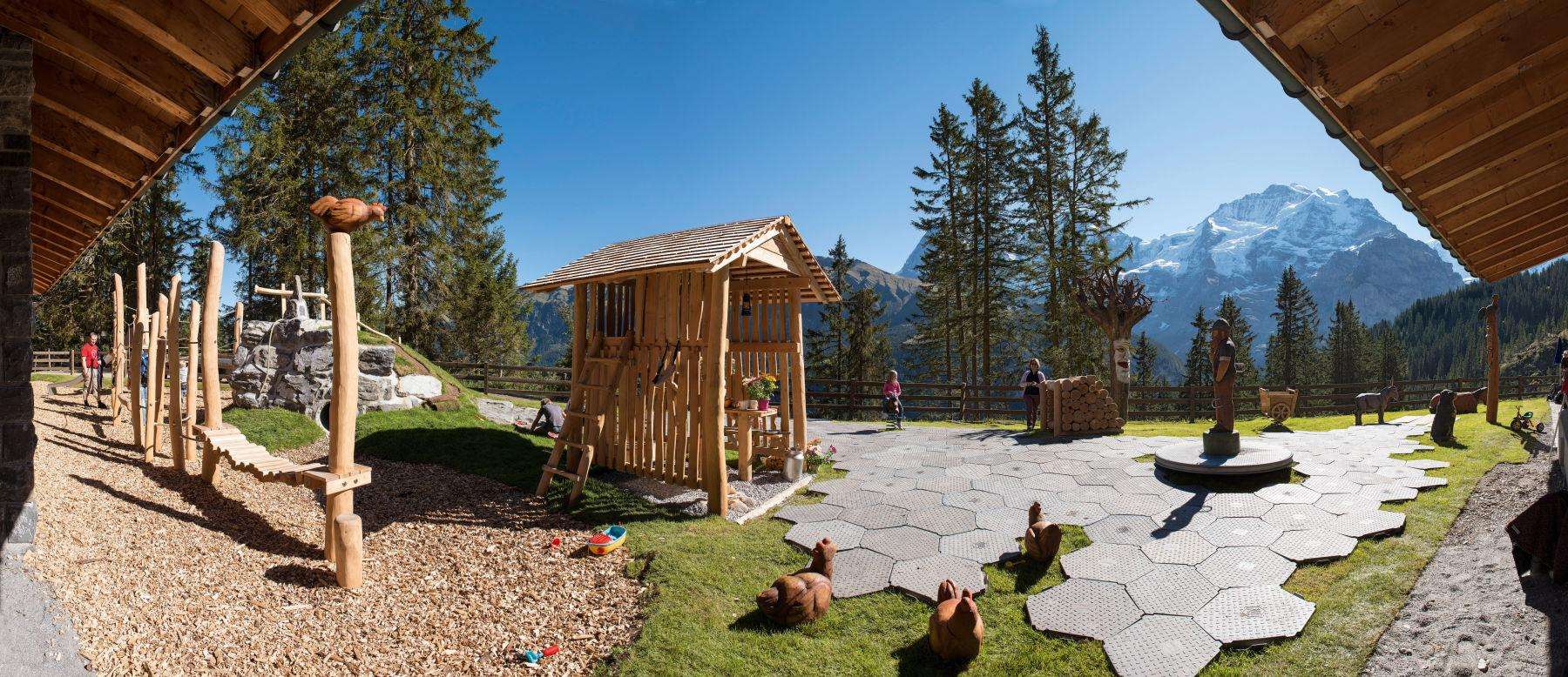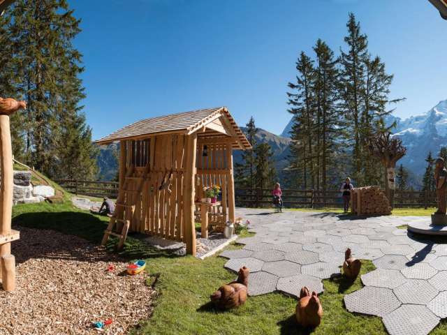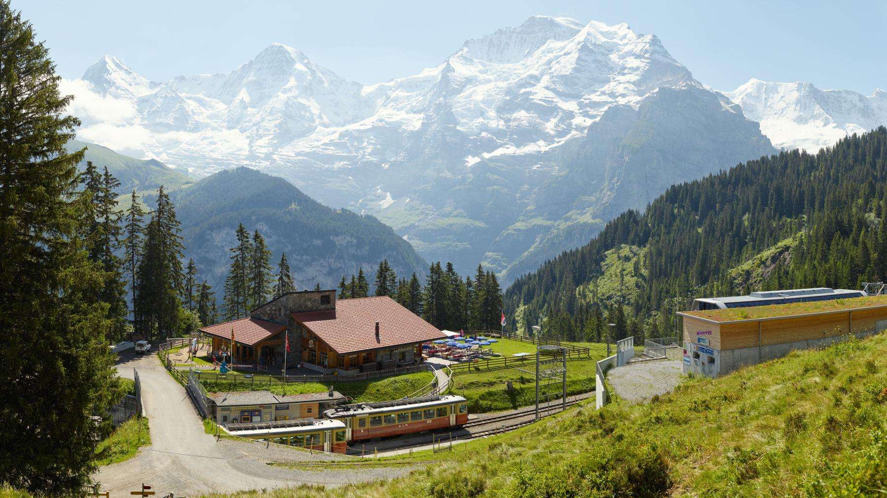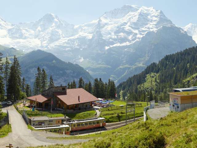 Au milieu d'une nature en grande partie intacte, l'auberge familiale avec sa terrasse ensoleillée et son restaurant self-service est une oasis de détente pour les randonneurs, les vététistes* ou les amateurs de sports d'hiver*. Winteregg est le seul arrêt intermédiaire sur la ligne de chemin de fer entre Grütschalp et Mürren. En plus du restaurant, il y a aussi une fromagerie d'alpage qui vend différentes sortes de fromages en été. L'un des points forts est le "Chästeilet", lors duquel on distribue à la fin de l'été le fromage qui a été produit. Une fête populaire avec une longue tradition dans toute la Suisse. Pendant les mois d'hiver, on rencontre surtout des skieurs* à Winteregg. Aux remontées mécaniques de Winteregg, Maulerhubel et Allmiboden se trouvent des pistes bleues et rouges, une piste de slalom et la très populaire Skyline Snowpark. Les randonneurs d'hiver y trouveront également leur compte, car le sentier de randonnée hivernal passe devant le restaurant. Blottis-toi dans les couvertures chaudes et réchauffe-toi avec une boisson chaude. Winteregg est accessible à pied aussi bien en été qu'en hiver. Au départ de Mürren, la promenade facile dure environ 40 minutes. Depuis Grütschalp, il faut compter environ 50 minutes.