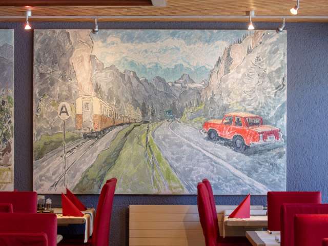 Dans la salle Silberhorn, des plats chauds et froids sont disponibles - selon le moment de la journée. Le choix va de la cuisine suisse traditionnelle comme la raclette et la fondue aux pâtes, aux différentes salades et aux escalopes. Et pourquoi ne pas essayer la trilogie de la fondue ? Une petite fondue au fromage en entrée, une fondue chinoise en plat principal et une fondue au chocolat avec des fruits frais en dessert.