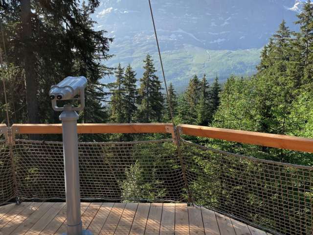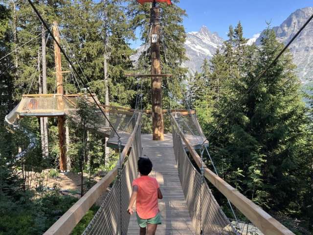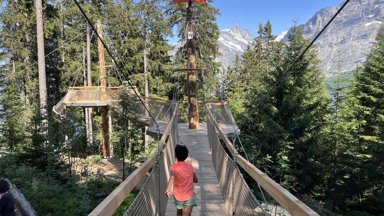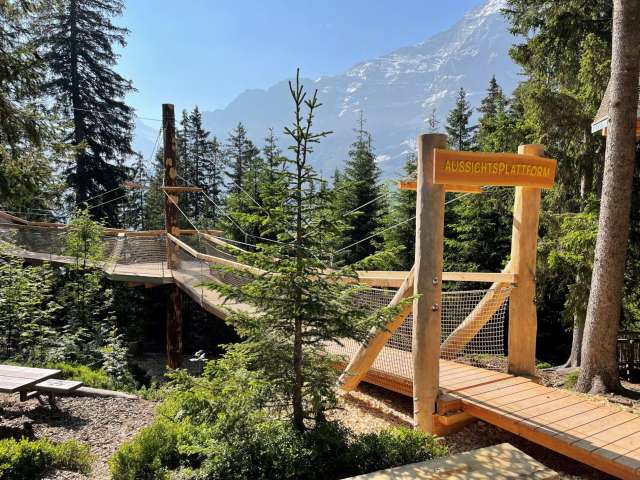 Avec un toboggan et quatre plates-formes, le sentier des cimes est une expérience naturelle unique pour toute la famille. Pour les petits, il y a beaucoup à découvrir, la variété et l'amusement sont assurés, tandis que les adultes peuvent se détendre tranquillement, profiter de l'air de la montagne et de la vue sur l'Eiger, le Mönch et la Jungfrau.