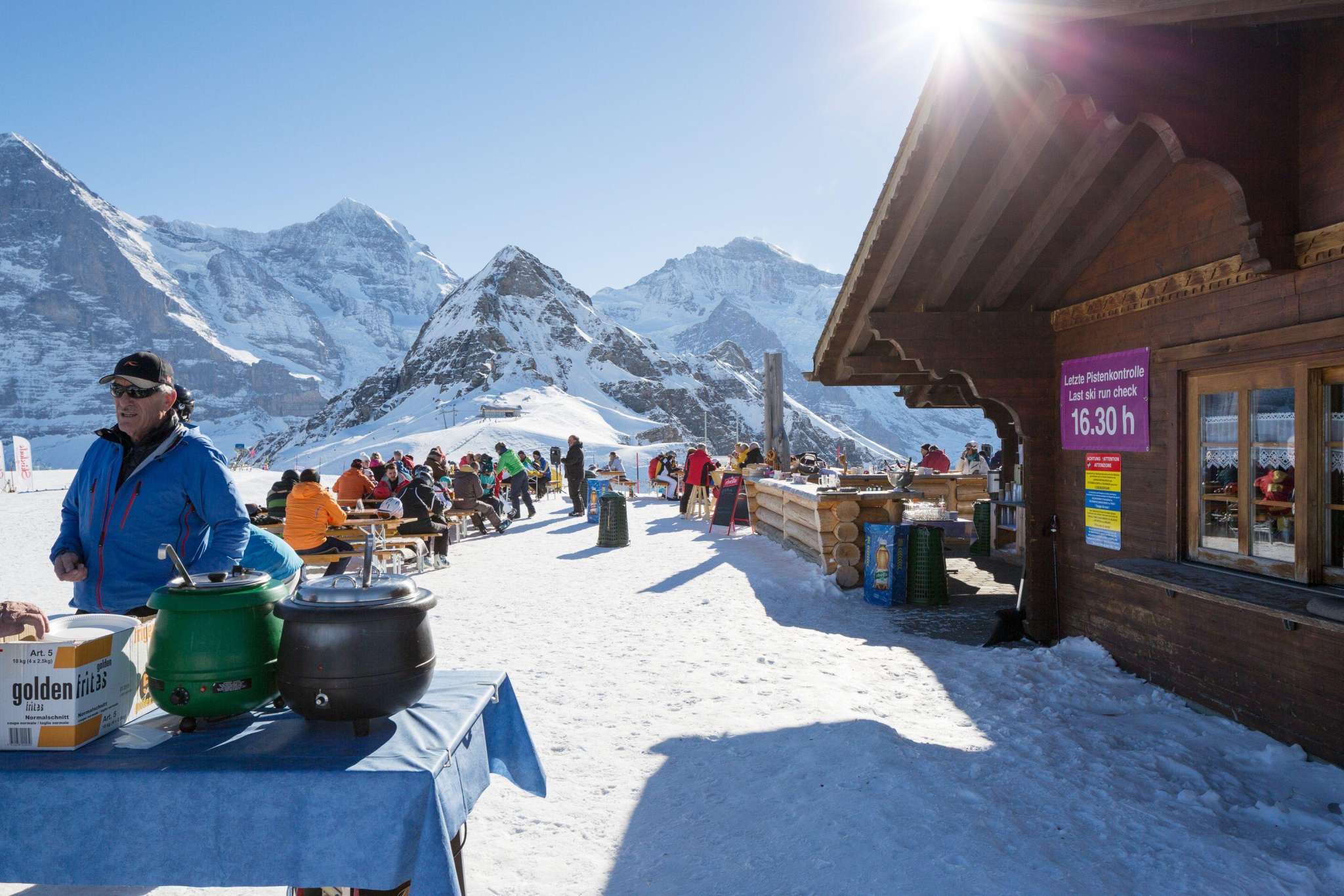 Situé sur le plateau du Männlichen, le Spycher Bar offre une vue unique sur les montagnes de la région de la Jungfrau. Ici, tu peux faire le plein de soleil et d'air de la montagne, déguster de délicieuses saucisses grillées de la région, choisir parmi d'innombrables boissons et profiter du calme sur une chaise longue.