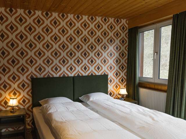 Inspiré par l’énergie audacieuse et libre des années 70, nous avons créé le Waldhuus Bellary comme un retour à une époque d’aventure, de style et de moments inoubliables. Situé au cœur des Alpes suisses, notre Waldhuus allie esthétique rétro et style contemporain, offrant une nouvelle perspective sur le paysage montagneux impressionnant.